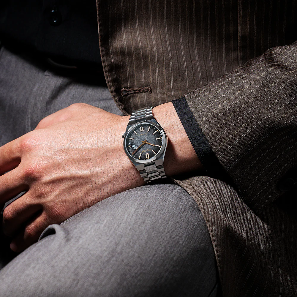 O Citizen Tsuyosa “Time Slip” NJ0200-50E é uma edição limitada a 8.000 peças em todo o mundo, pensada para quem busca uma expressão contemporânea do tempo no pulso — combinando proporções equilibradas, design esportivo com uma leitura elegante e um acabamento refinado para uso diário e ocasiões especiais. O conceito “Time Slip” representa o deslizar do tempo, uma metáfora visual expressa no mostrador fumê que transita do preto profundo ao cinza suave, criando a sensação de movimento constante. Os detalhes dourados e o contraste sutil entre luz e sombra refletem a passagem dos instantes com elegância, evocando a harmonia entre tradição e modernidade que define a essência da coleção Tsuyosa.