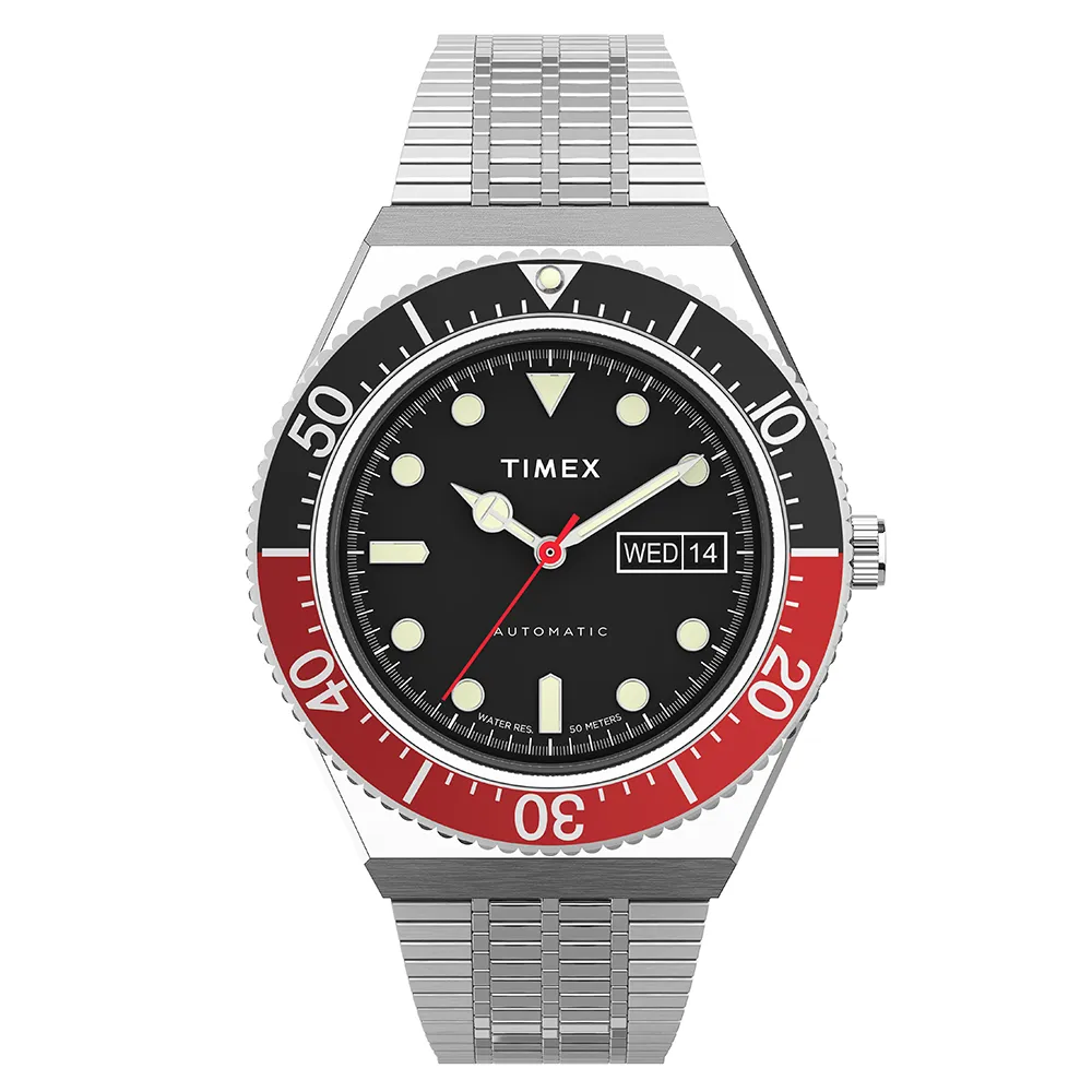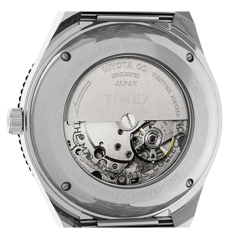 O Timex M79 Automático TW2U83400M é inspirado no modelo icônico Q Timex dos anos 1970, trazendo o charme retrô aliado à tecnologia de um movimento automático moderno. Com design clássico, caixa em aço inoxidável e mostrador preto, ele é ideal para quem aprecia relógios com personalidade e história.
