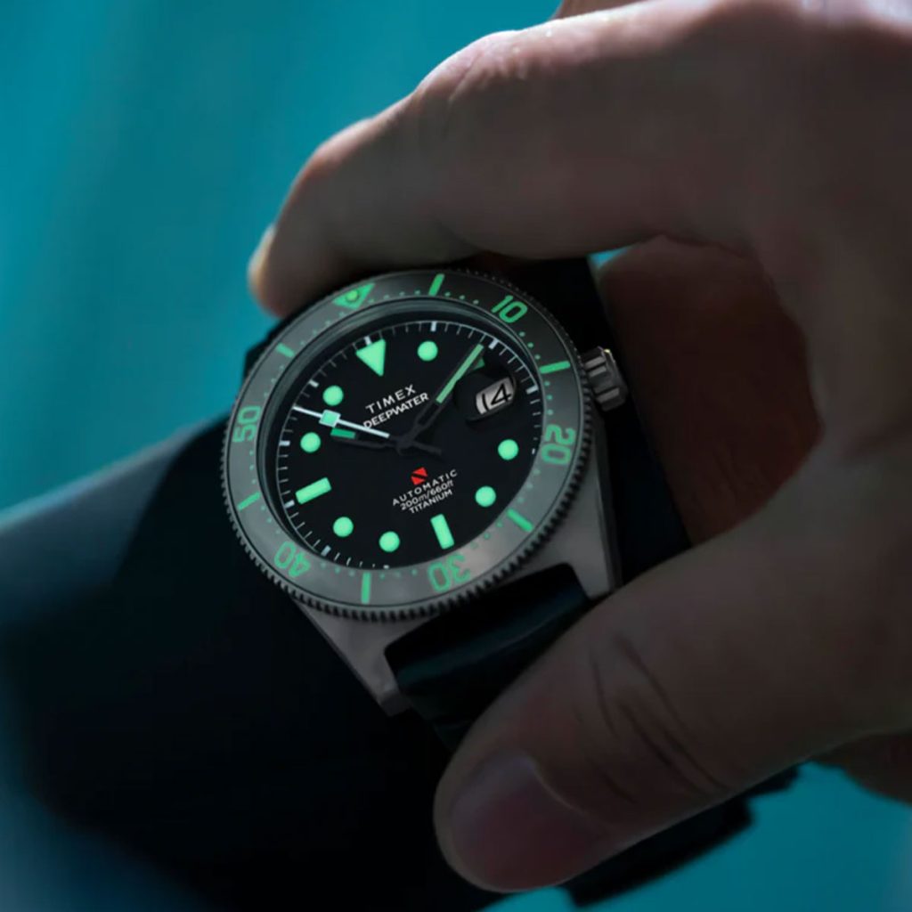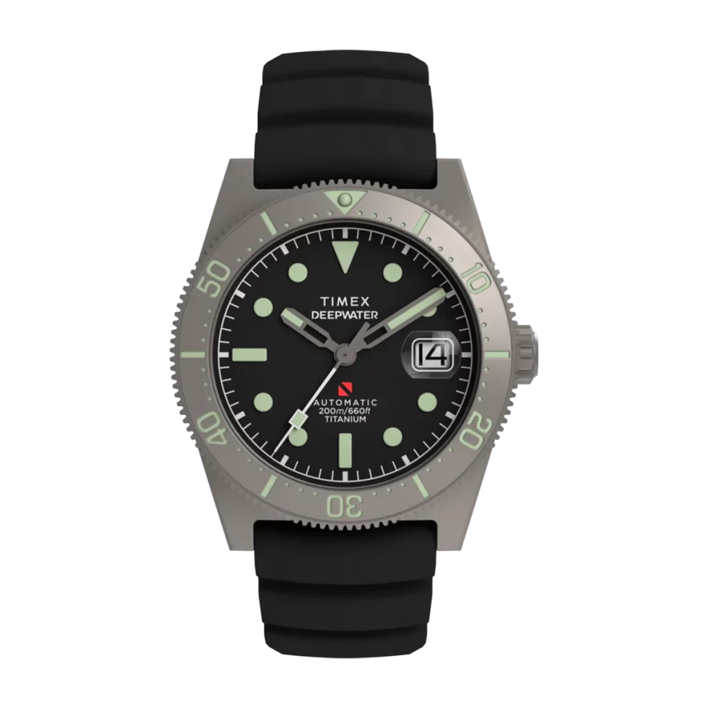 Inspirado nas aventuras subaquáticas, o Timex Deep Water Titanium é uma ode à robustez e à leveza. Criado para quem encara o tempo de frente — em terra firme ou em grandes profundidades — o modelo combina materiais de alta performance com um design limpo e funcional, que reflete o DNA aventureiro da marca.
