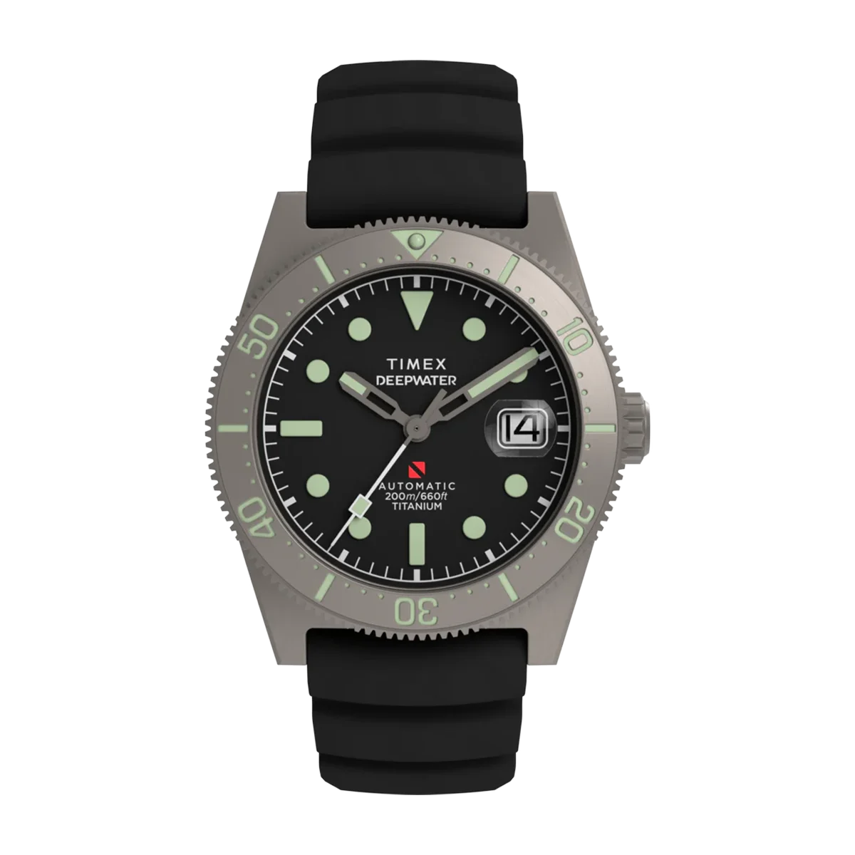 Inspirado nas aventuras subaquáticas, o Timex Deep Water Titanium é uma ode à robustez e à leveza. Criado para quem encara o tempo de frente — em terra firme ou em grandes profundidades — o modelo combina materiais de alta performance com um design limpo e funcional, que reflete o DNA aventureiro da marca.