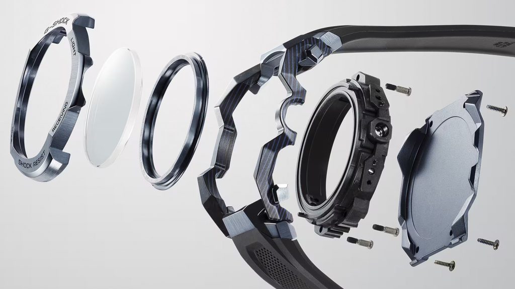 Um detalhe que marca esta geração é o uso de Inteligência Artificial no processo de desenvolvimento estrutural. A Casio utilizou IA para simular, testar e otimizar a distribuição de forças na estrutura híbrida.