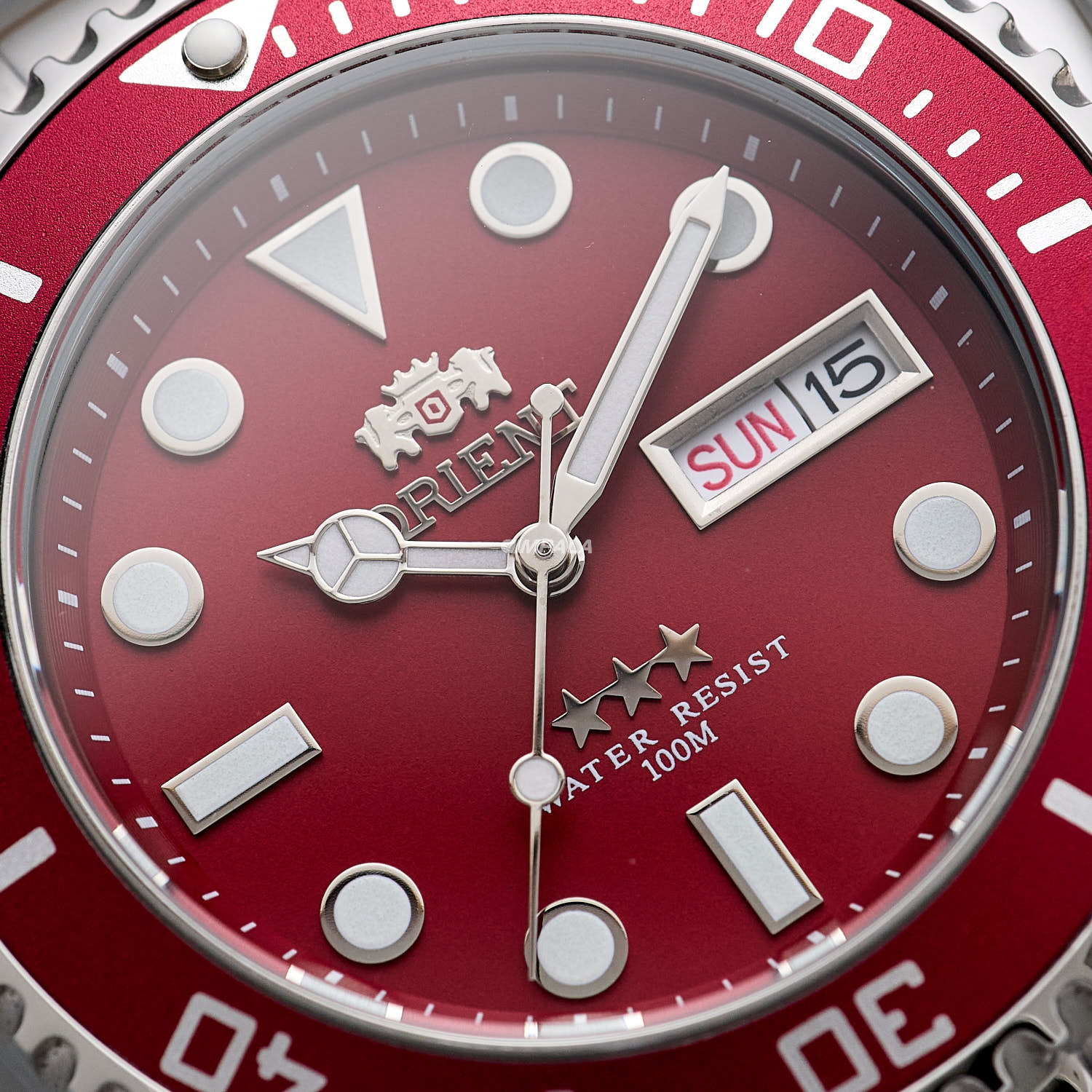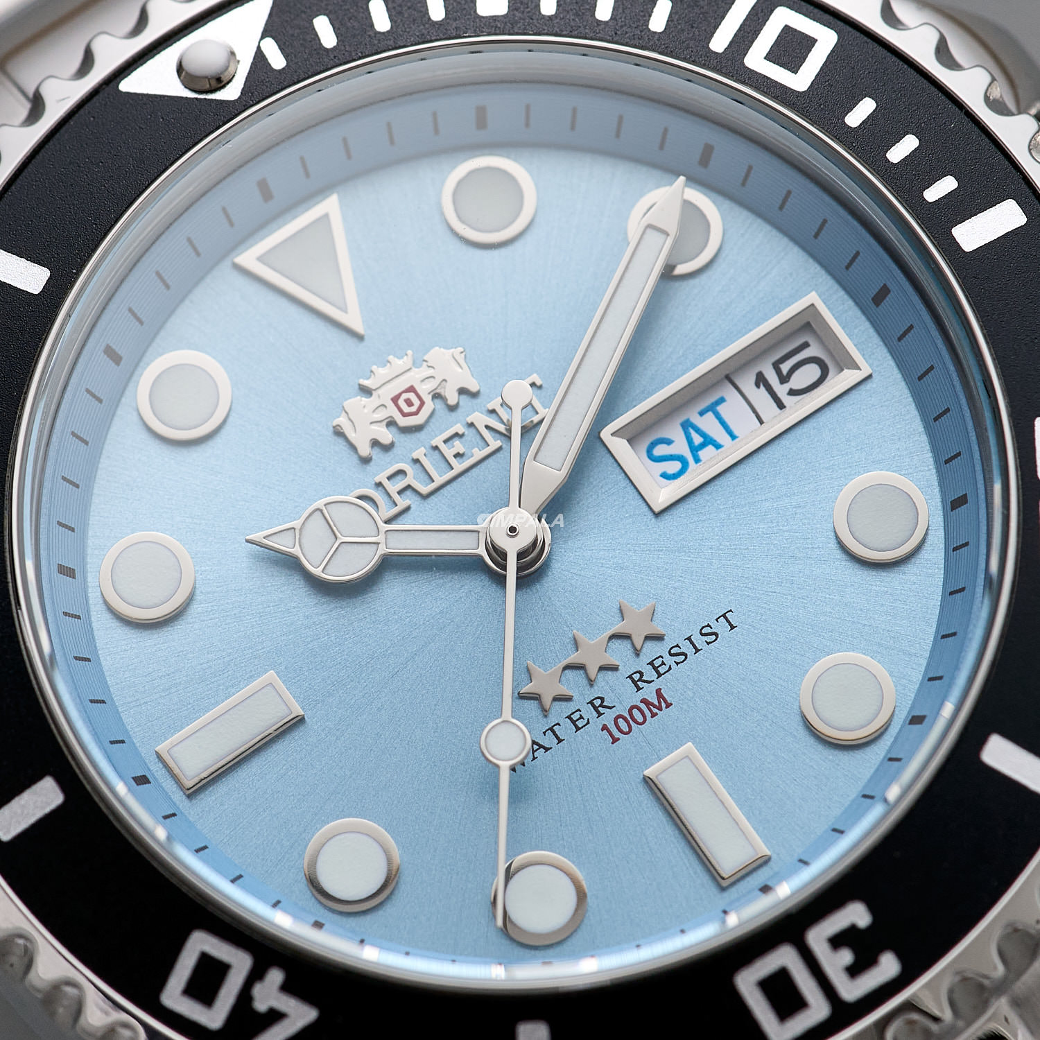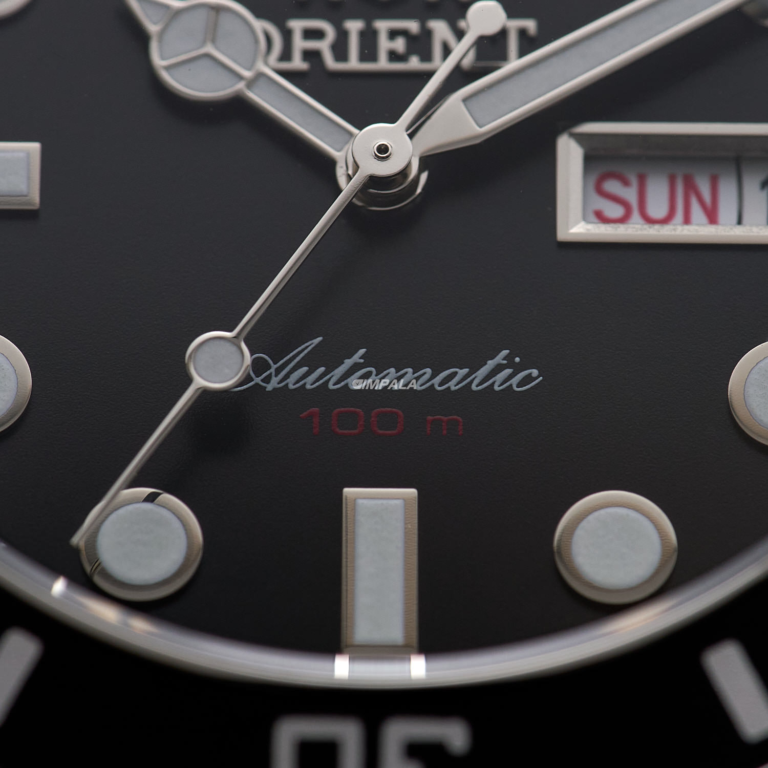 As mudanças no mostrador incluíram o símbolo de cristal de safira, removendo a contagem de joias desatualizada em favor do logotipo Orient e substituindo “10 bar” por “100m”. Além disso, todas as versões eram tecnicamente idênticas, tendo a mesma caixa e calibre 48743 automático, sem hacking e sem movimento de enrolamento manual. E o mais importante: tanto os cristais minerais quanto os de safira apresentaram o ciclope ao longo da data.