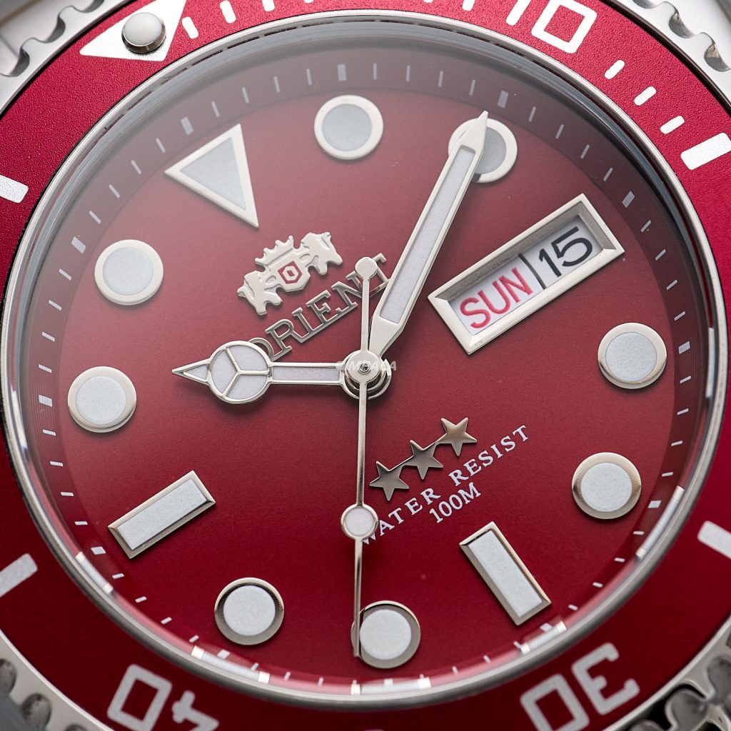 Mas há um detalhe que merece destaque especial — e que certamente chama a atenção dos entusiastas mais atentos: a inserção das três estrelas no mostrador. Para quem acompanha a história da Orient, esse detalhe não é apenas decorativo. As estrelas sempre foram um selo visual associado à qualidade, durabilidade (ou resistência) e acessibilidade, especialmente em modelos que marcaram época.