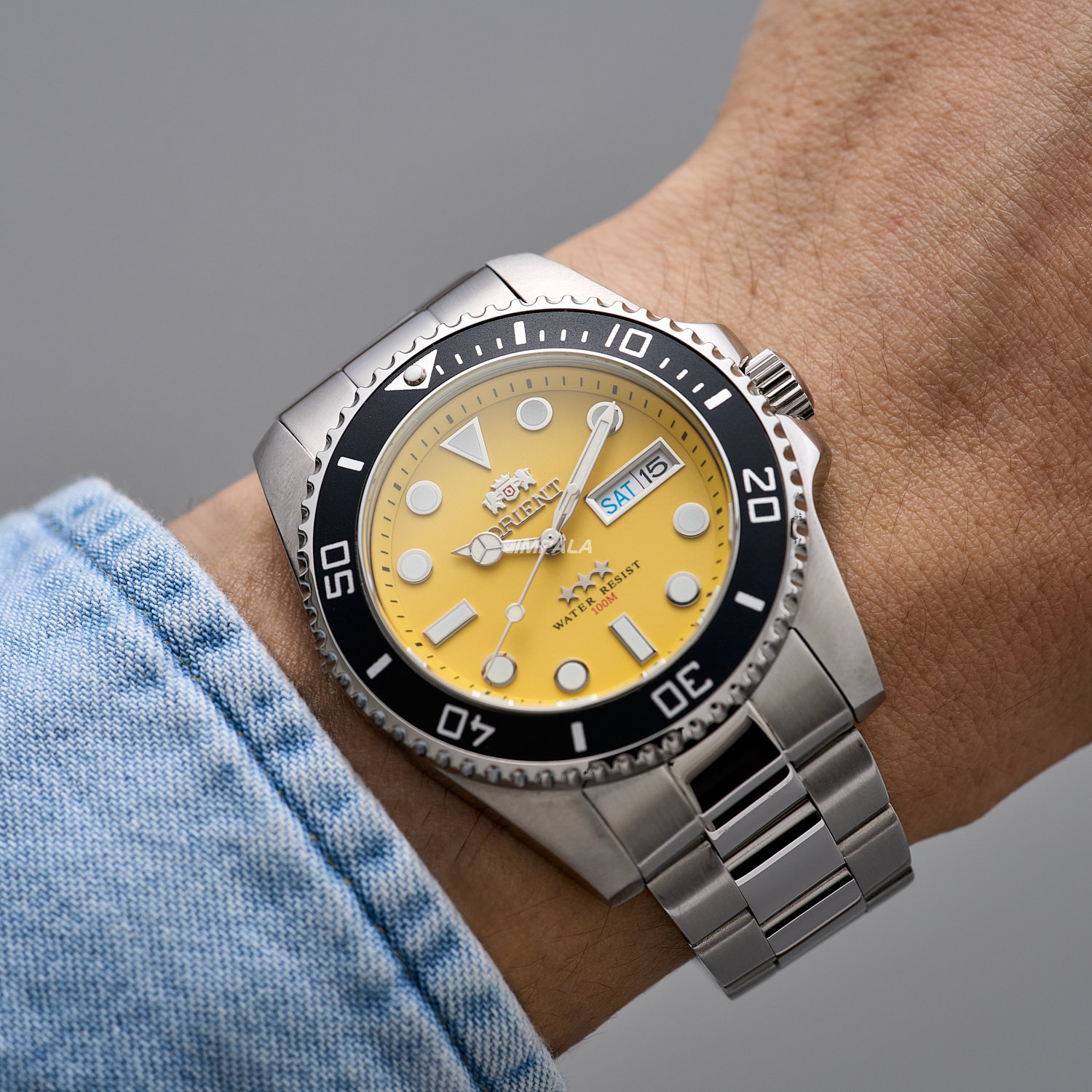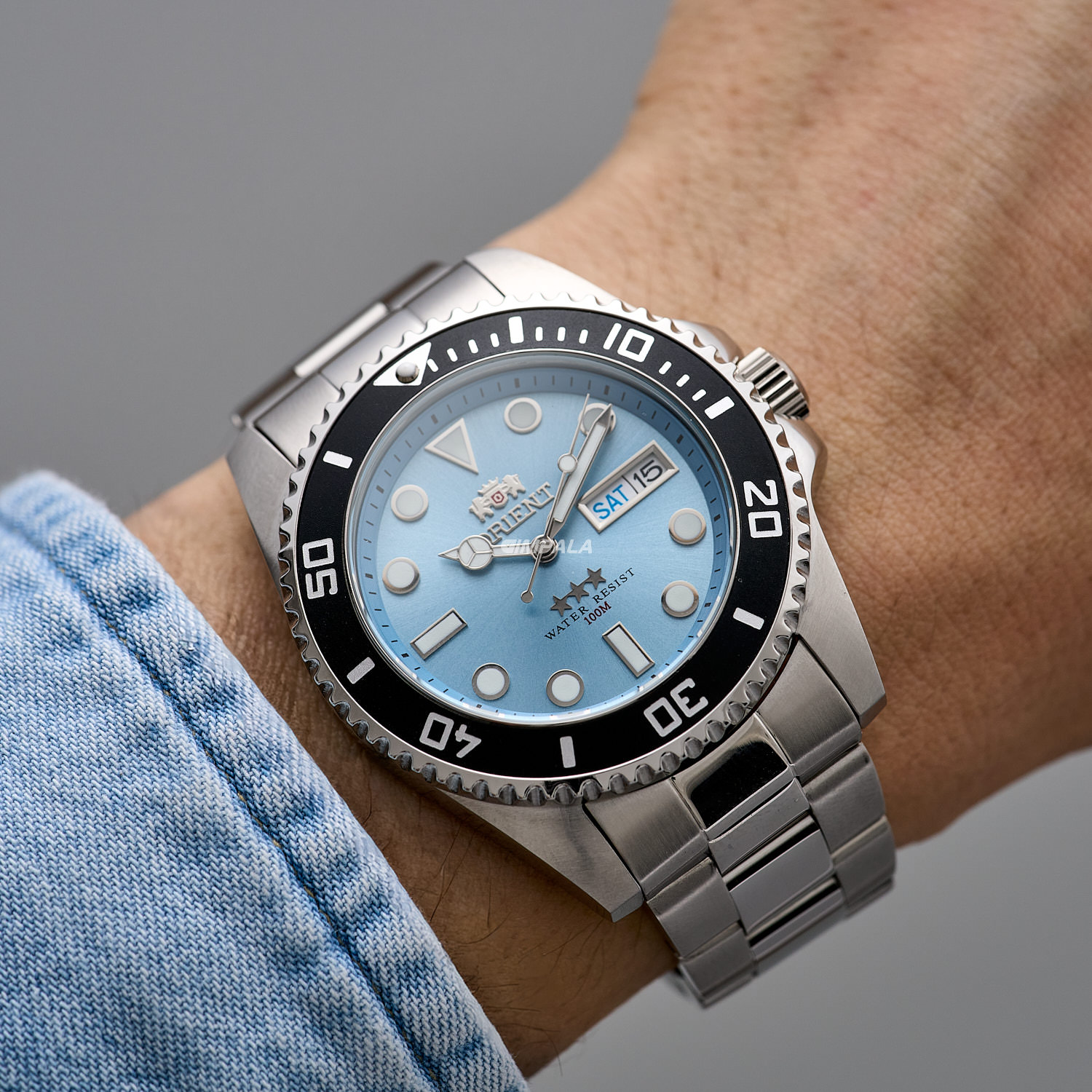 A Orient lançou originalmente quatro versões, com mostradores pretos e azuis, bem como versões de dois tons – tudo no espírito dos próprios modelos da Rolex. Alguns desses relógios chegavam a ser chamados internamente por termos como “Snorkeler”, “OriLex” ou simplesmente Sub, justamente por serem referências visuais aos relógios que marcaram a história dos divers profissionais. Legal, né?