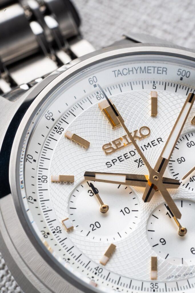 Dentro da linha Prospex, o modelo escolhido para marcar esta importante data foi um cronógrafo, especificamente um Speedtimer, equipado com calibre 8R48. A história da Seiko com cronógrafos de pulso remonta ao ano de 1964, com o lançamento do Crown Chronograph. Não foi coincidência: em 1964, Tóquio sediou as Olimpíadas, com a Seiko naturalmente sendo a cronometrista oficial do evento. O ano foi um marco tecnológico também: justamente para as olimpíadas, a Seiko apresentou seus cronômetros a quartzo QC-951, que teve papel fundamental no desenvolvimento do primeiro relógio de pulso a quartzoapresentado ao mundo, cinco anos mais tarde. Mas este é assunto para outro artigo.
